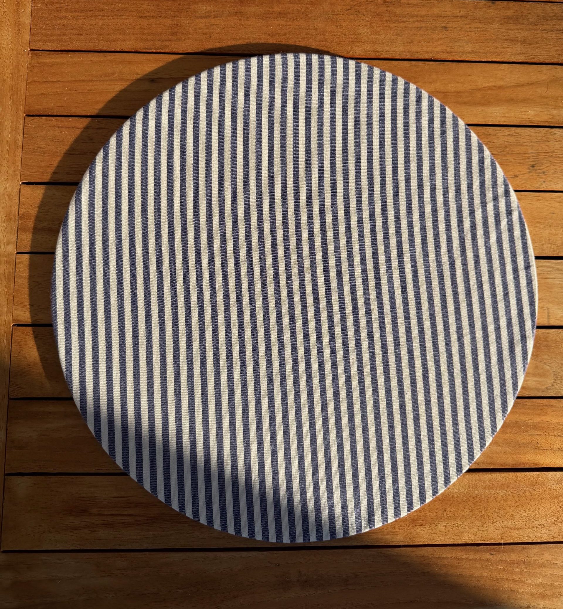 Set de table rigides, il s’agit d’un disque de MDF de 3mm d’Ć©paisseur et d’un diamĆØtre de 39 cm avec une face laquĆ©e blanche, recouvert d’une housse en tissus.